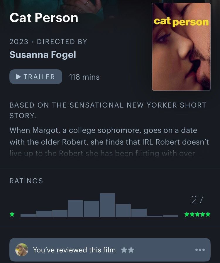 So huzz #1 told me to watch this film called Catperson, which is not rated very highly at all.